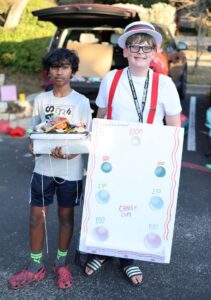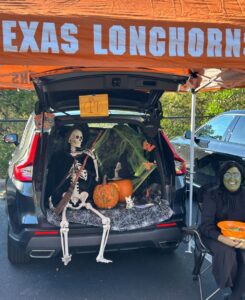Car trunks are not the only activity which is provided. TLLC has grown this event to include carnival style games, karaoke (quite a bit of Taylor Swift has been sung), face painting, costume and trunk competitions, playtime on the church playground, and so much food. This past year boasted grilled to order hot dogs and Bush’s chicken, Kona Ice snowcones, chips, and pink lemonade. The adults love all the options as much as the children! One of the best costumes we’ve seen has been a carnival barker with his very own game of ball toss which he actually wore. We love to see the creativity and energy that is put into costumes and trunks. This is not just open up your trunk and give out candy. Oh no. We’ve seen trunks which support sports (UT and Texas A&M are very popular), gone under the sea, been on a pirate ship, and enjoyed so many Halloween trunks decked out in typical Halloween style.